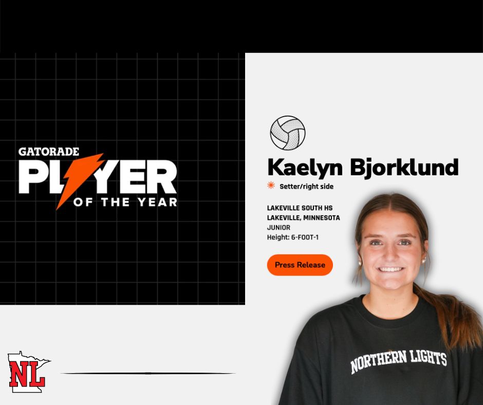 A HUGE congratulations to our Northern Lights athlete, Kaelyn Bjorklund, on receiving the honor of Gatorade Player of the Year! 🤩👏🏼✨ So well deserved & we are so proud of you!